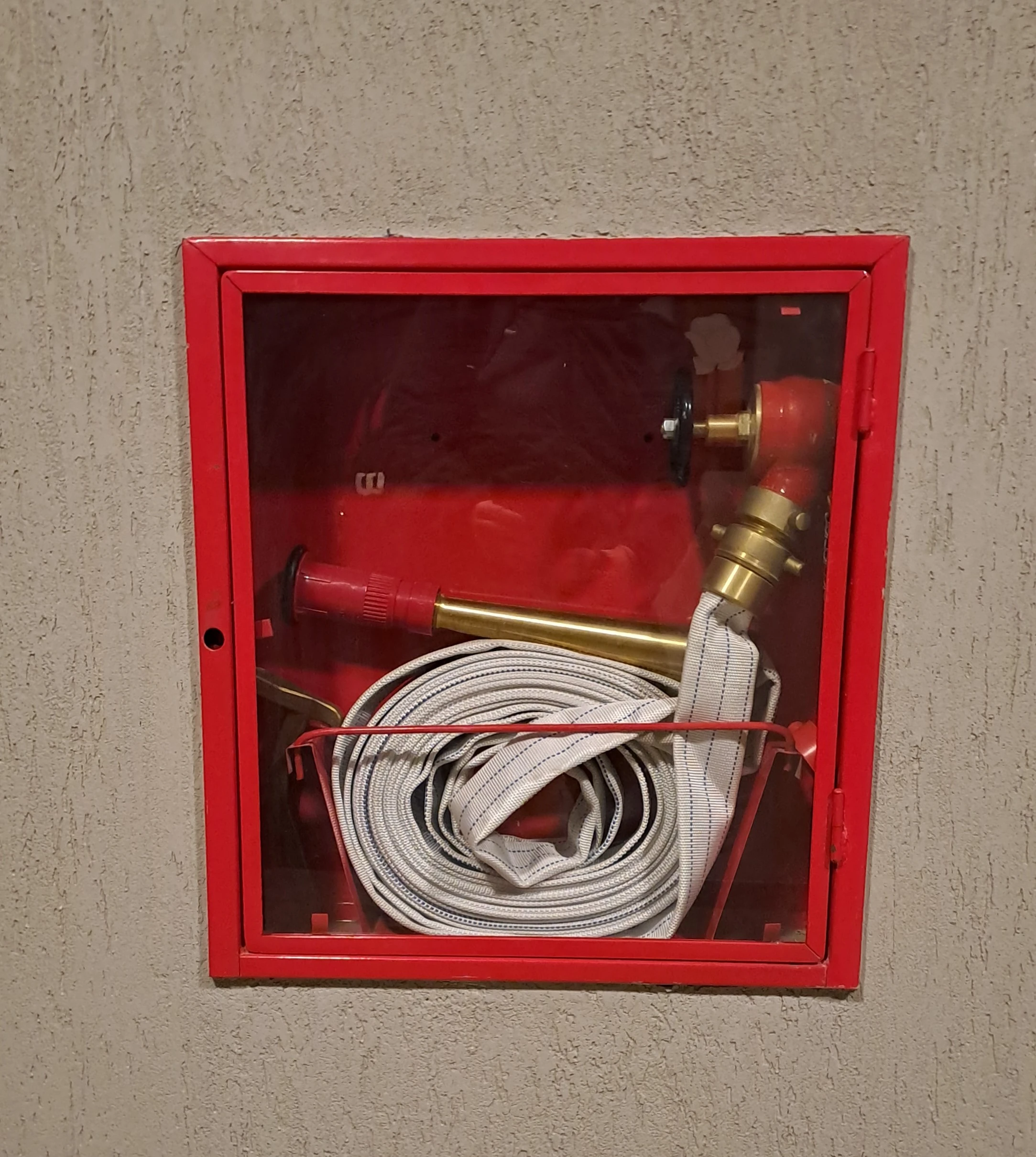 Mangueras para uso de los Bomberos. Se encuentran en los palieres de cada piso y estratégicamente distribuidas en los espacios comunes y cochera